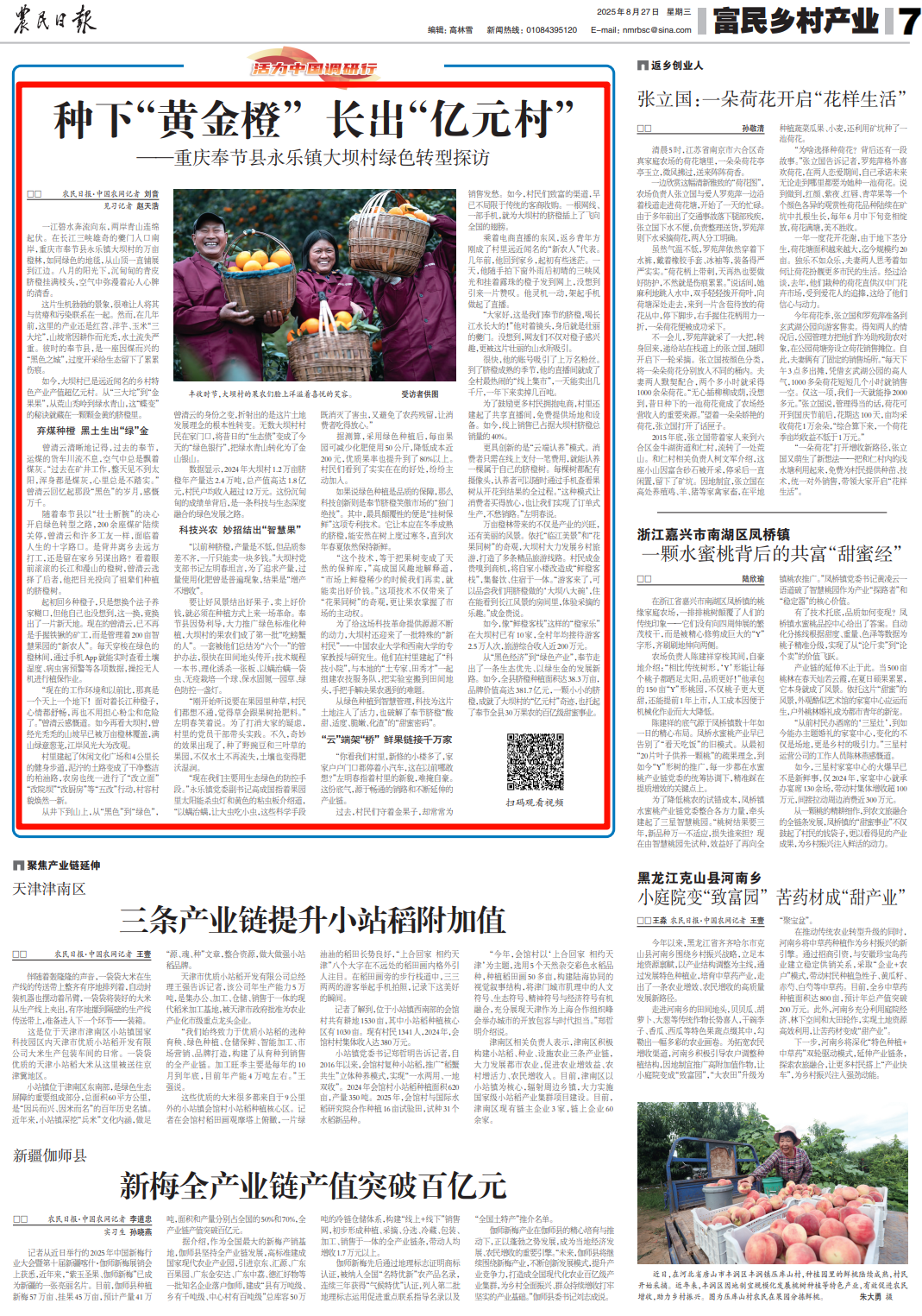 乘着电商直播的东风,返乡青年方刚成了村里远近闻名的“新农人”代表。几年前,他回到家乡,起初有些迷茫。一天,他随手拍下窗外雨后初晴的三峡风光和挂着露珠的橙子发到网上,没想到引来一片赞叹。他灵机一动,架起手机做起了直播。