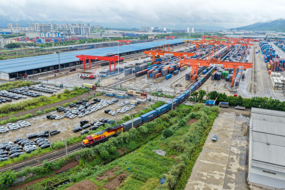 今年4月,重庆首次开行图定中亚班列,并以每月2列的固定频次实现常态化开行。相较于以往的公路转铁路的联运模式,中亚班列常态化开行后,重庆至中亚的物流时效提升20%以上,单箱成本降低15%。 新华社记者 唐奕 摄