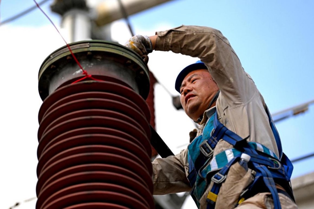 作业人员在110千伏桐岩变电站进行设备大修。向江微 摄。