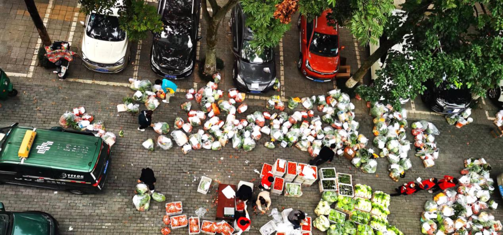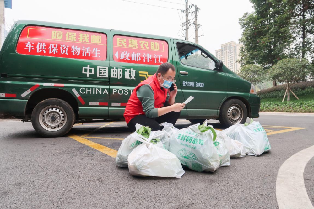 这些前一日由居民们通过“邮乐优鲜”社区团购链接接龙下单的蔬菜包,在当天下午坐上邮车经投递员的手送到各小区,为居家者送去新鲜口福。