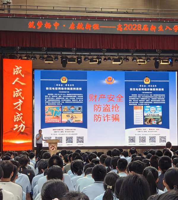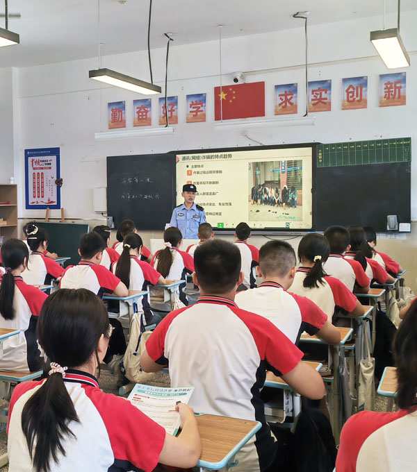 九龙坡区公安分局民警到杨家坪中学开展开学反诈课程。