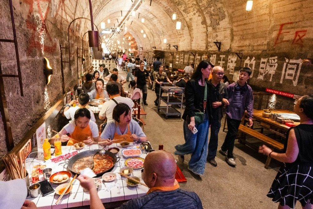 防空洞主题火锅店,食客接连不断。记者 张锦辉 摄/视觉重庆