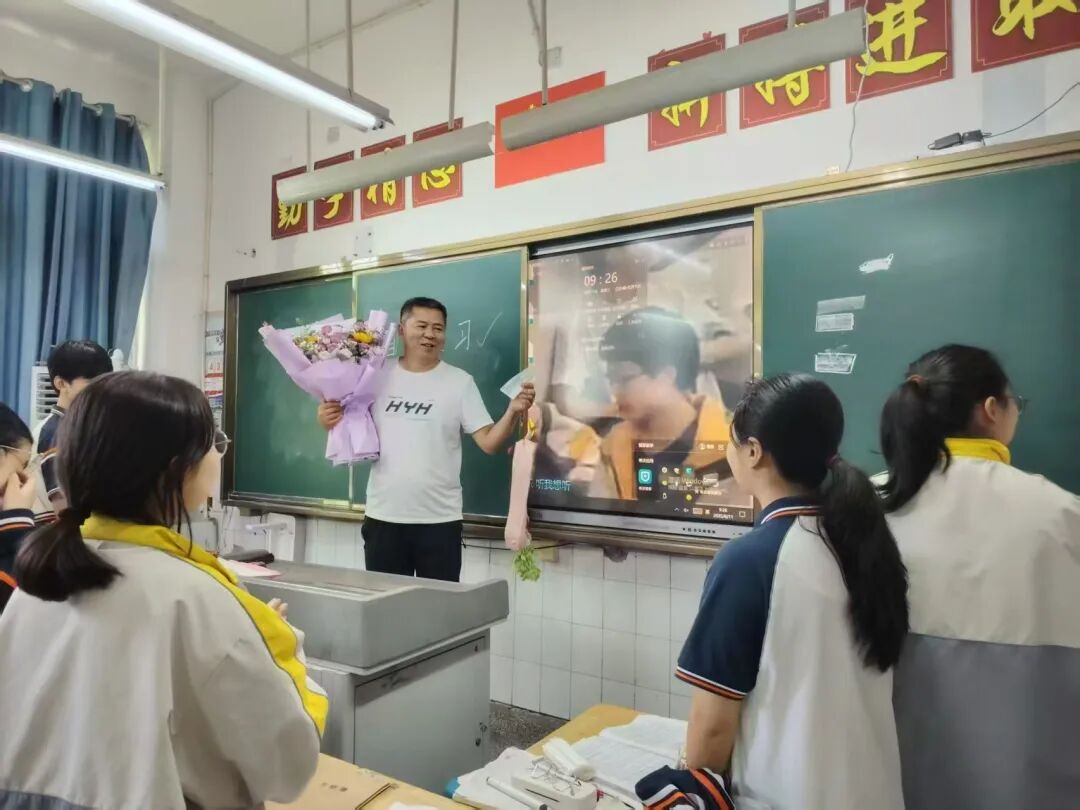 2025年6月,胡志贵在学校“感恩教师"毕业告别活动与学生交流话别。