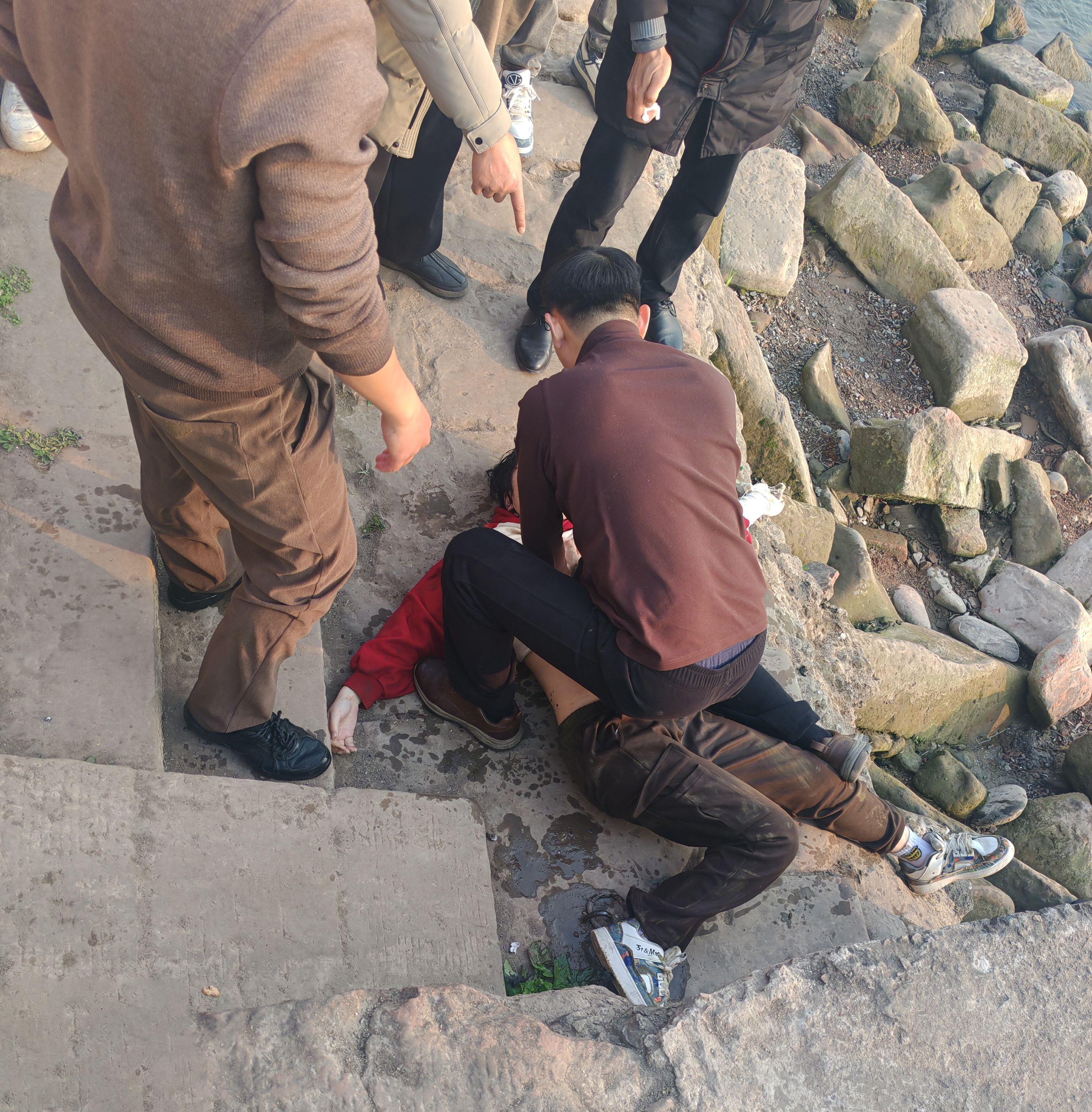 “女孩当时已经完全失去意识,全身瘫软。”黄鑫回忆,随后,自己立刻为女孩进行心肺复苏和人工呼吸。岸上的群众也在帮忙,赶紧拨打了120。
