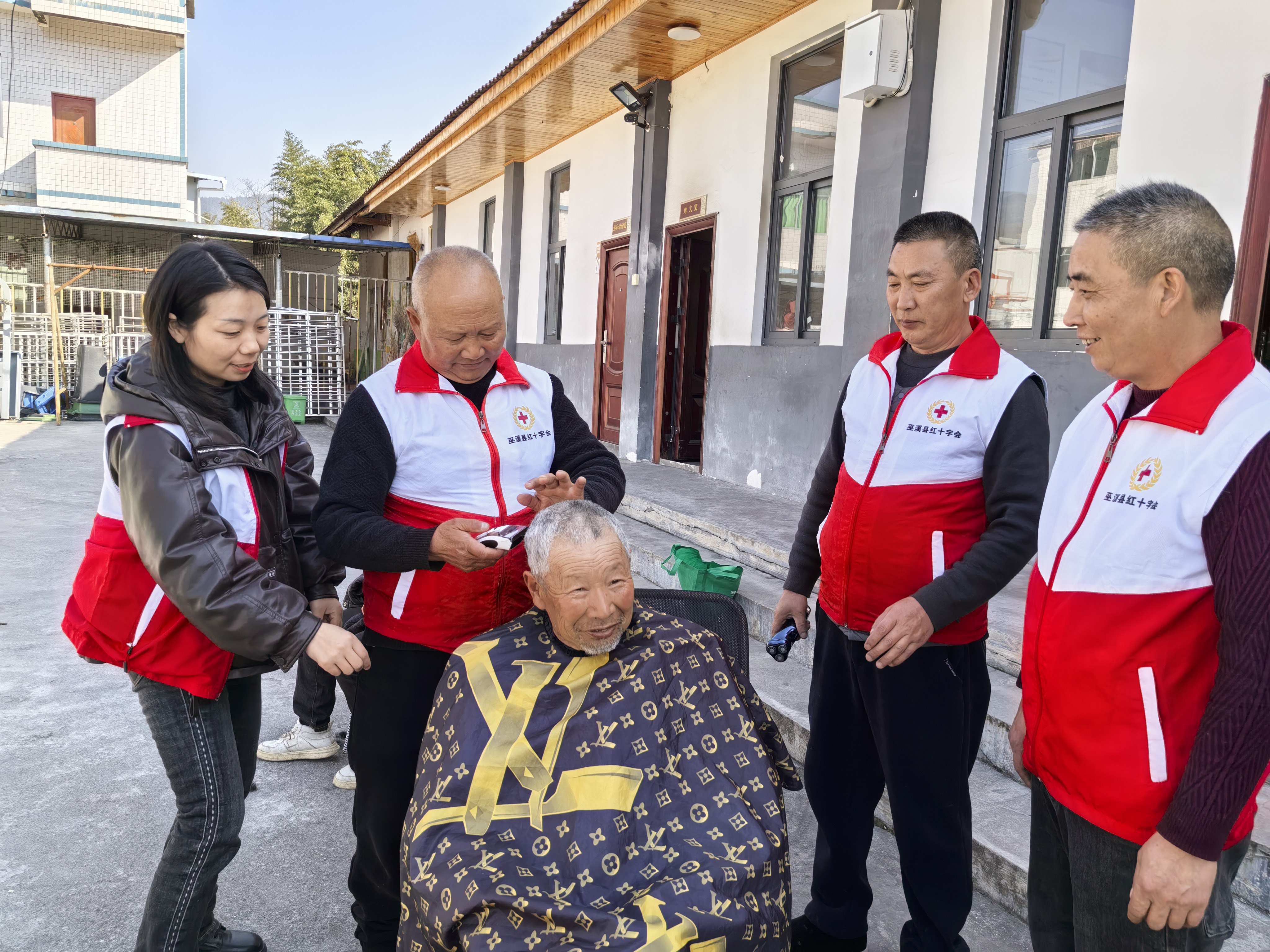 1月11日的冬日午后,巫溪县峰灵镇峰灵社区一棵大树下暖意融融。穿着红马甲的志愿者小周正俯身为王爷爷修剪头发,剪刀起落间,银丝簌簌落下。“他们每月都来,跟我们贴心着呢!”看着清爽的发型,王爷爷脸上盛满笑意。