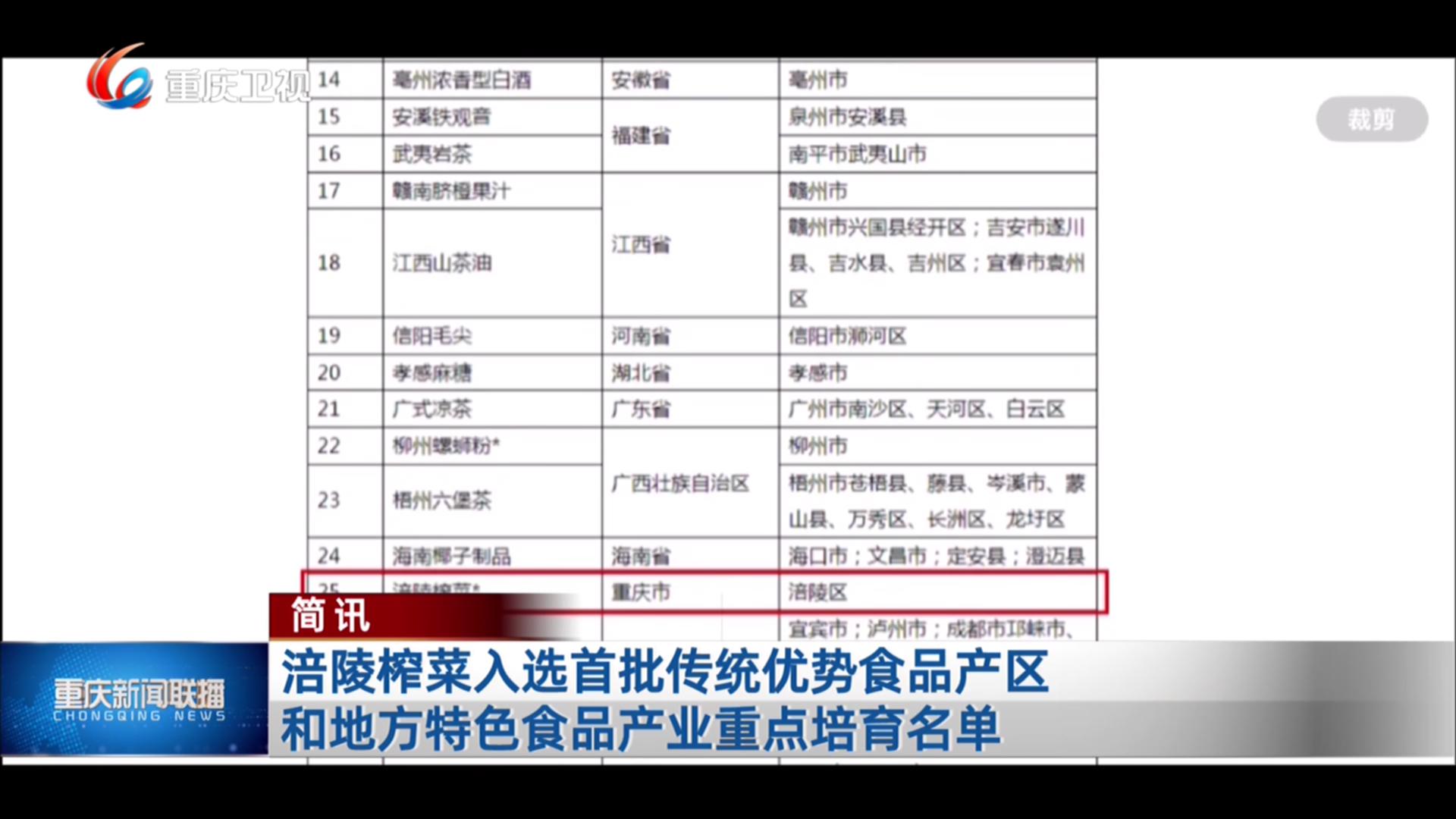 简讯:涪陵榨菜入选首批传统优势食品产区和地方特色食品产业重点培育名单