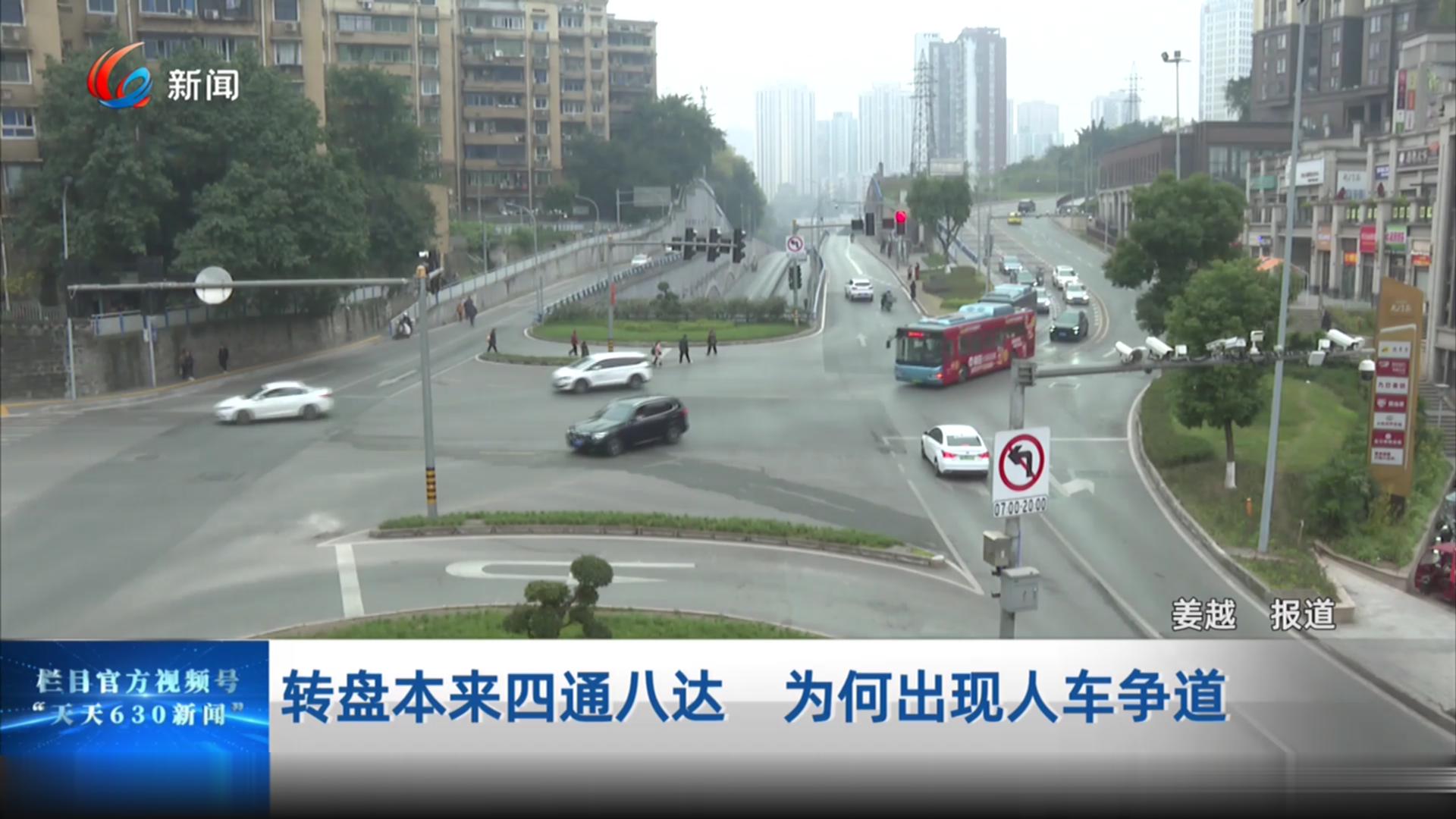 转盘本来四通八达 为何出现人车争道