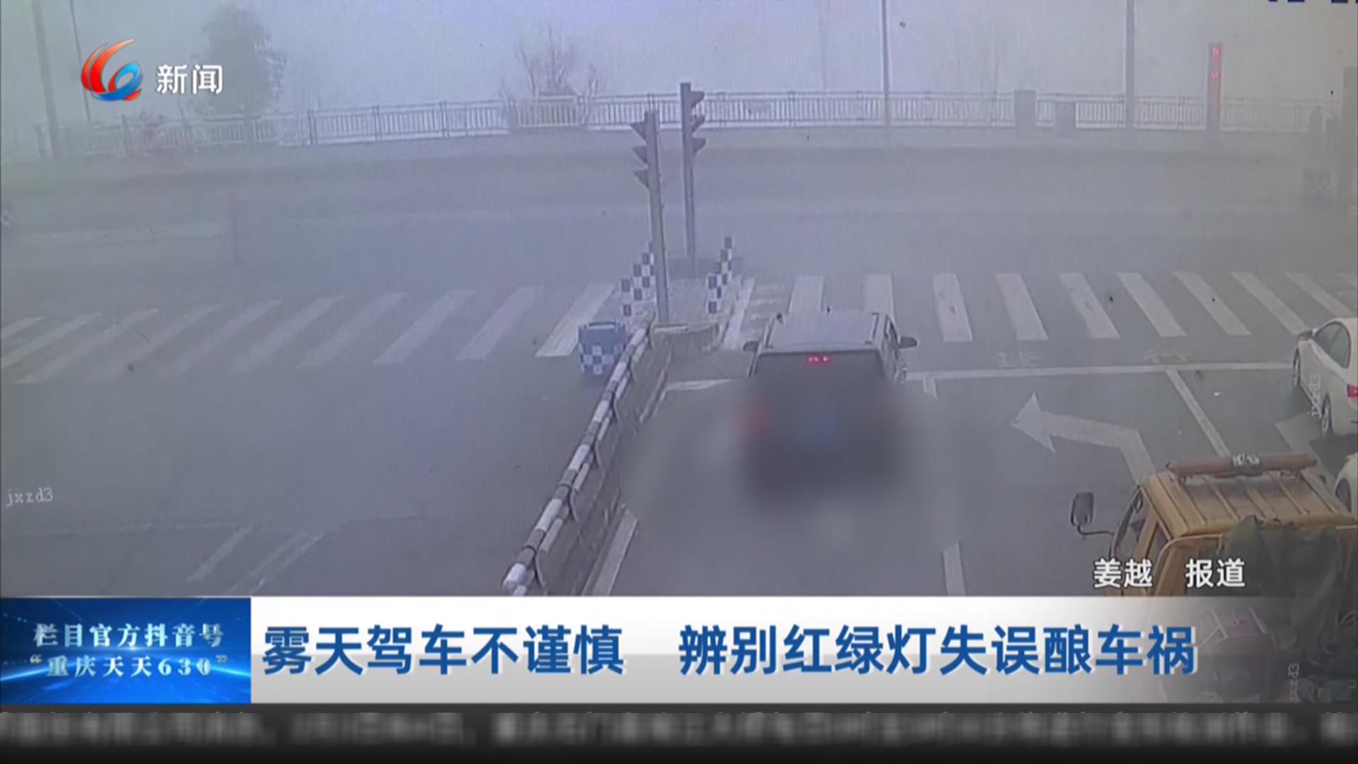 雾天驾车不谨慎 辨别红绿灯失误酿车祸
