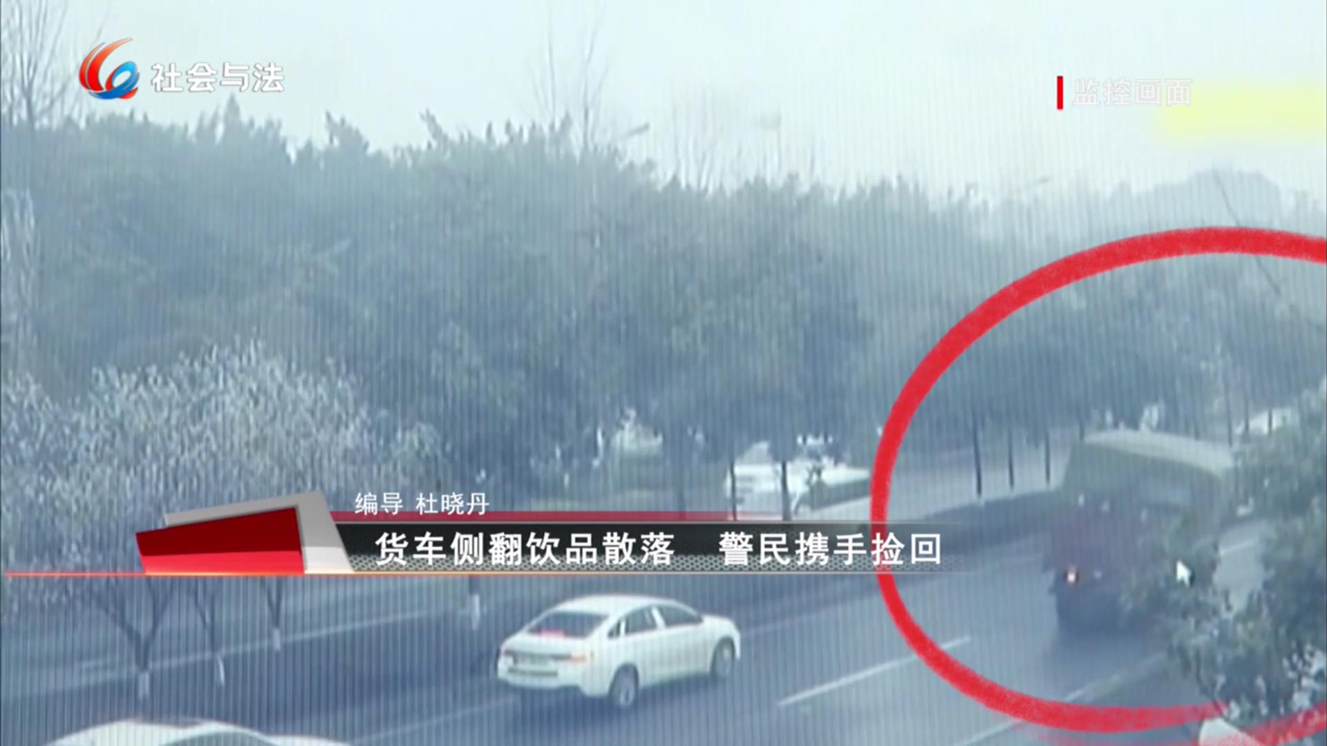 货车侧翻饮品散落 警民携手捡回