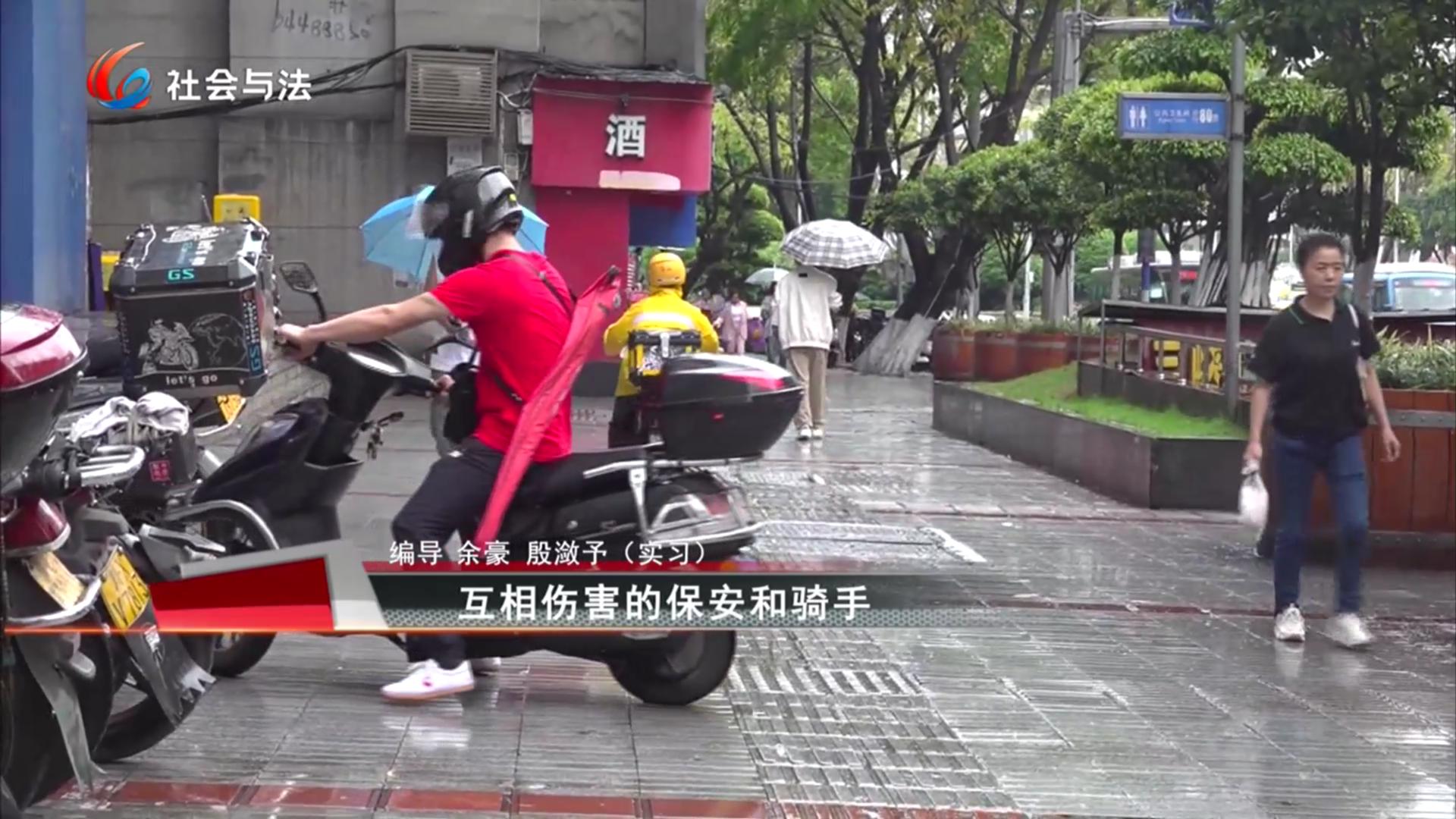 互相伤害的保安和骑手