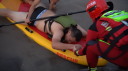 演练变实战 救援队员救下江中落水男子