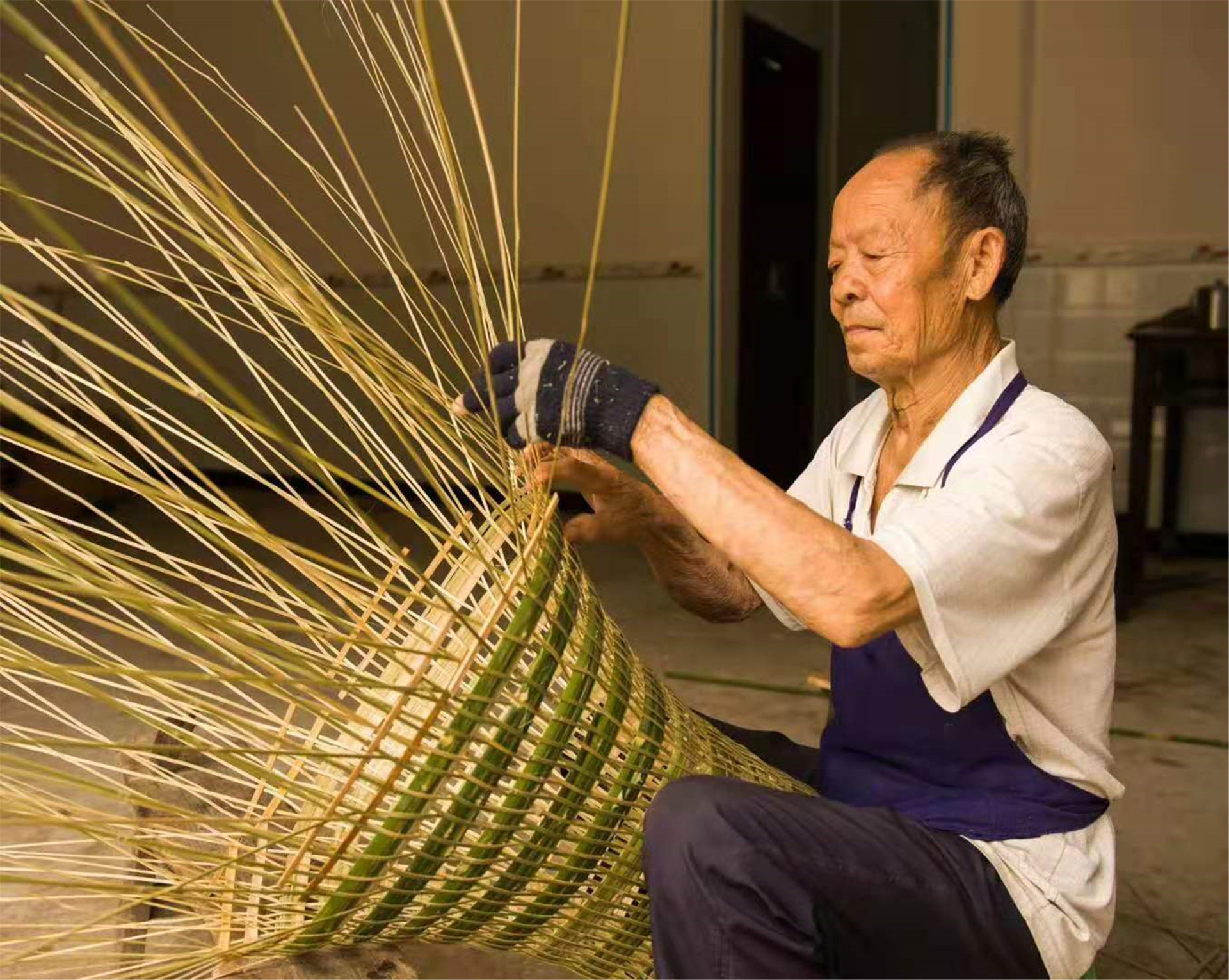 竹编在篾匠手艺人的指尖上飞舞,匠人们手握竹丝不急不躁,编竹成器、刚柔并济,留下纵横交错的缜密。王国庆 摄
